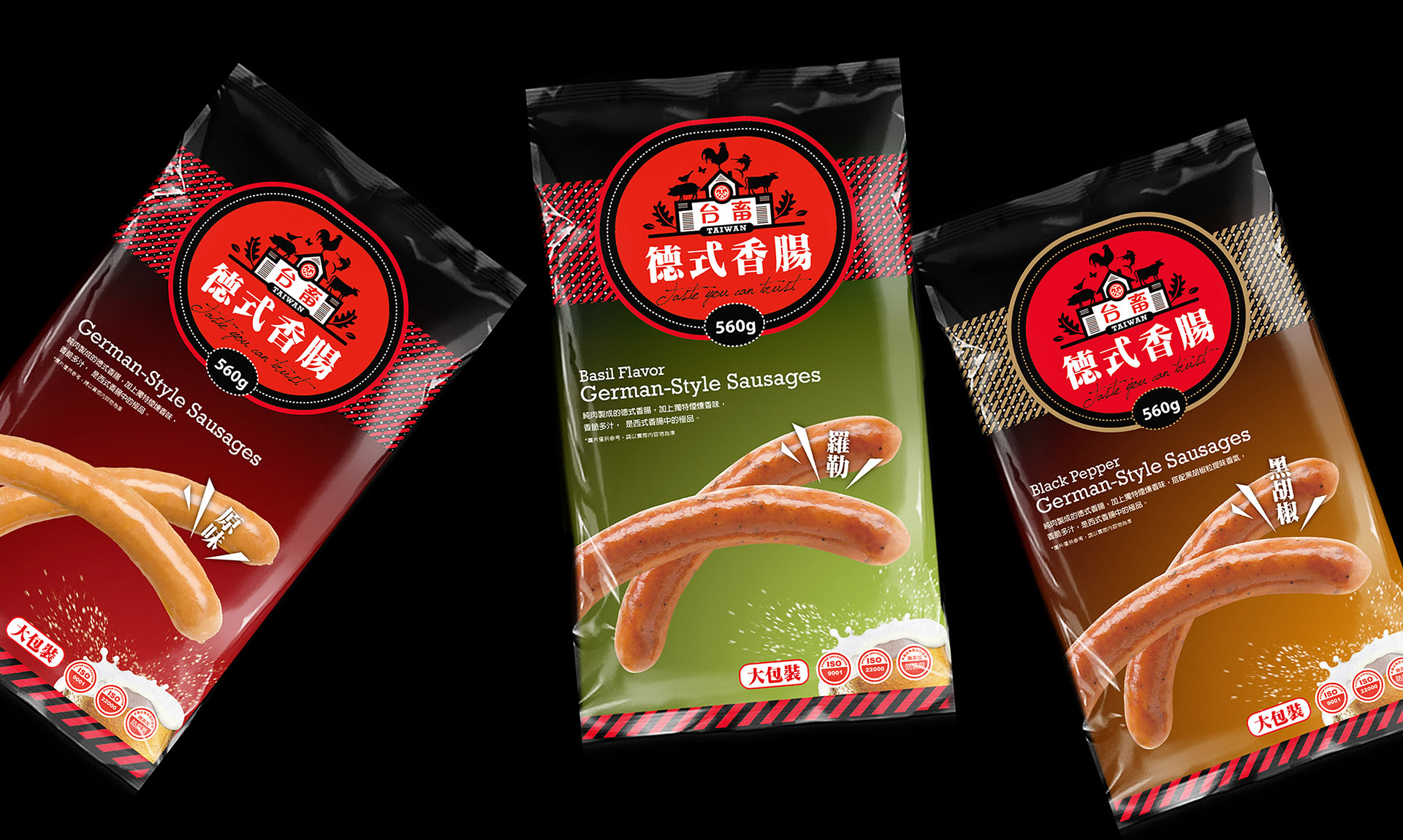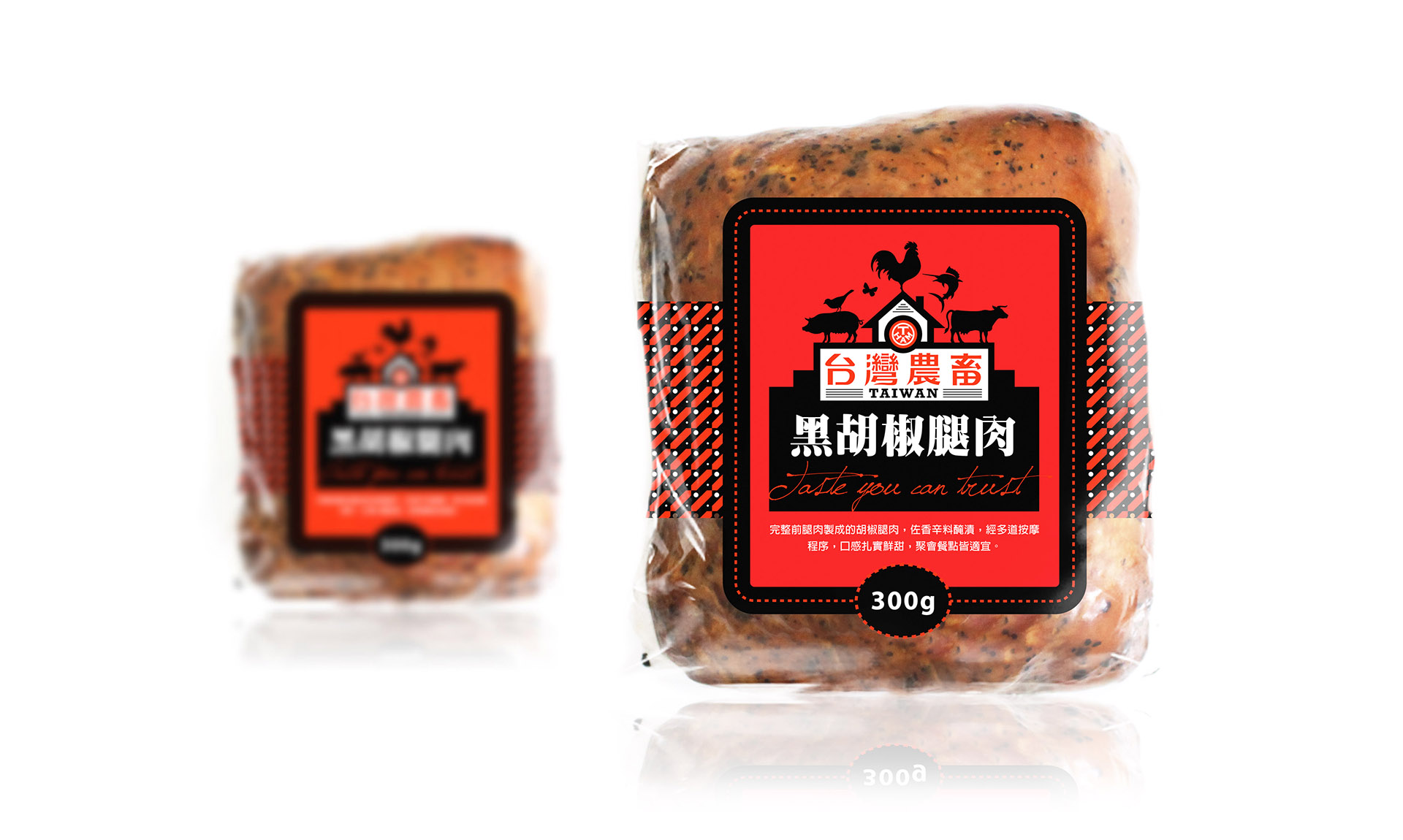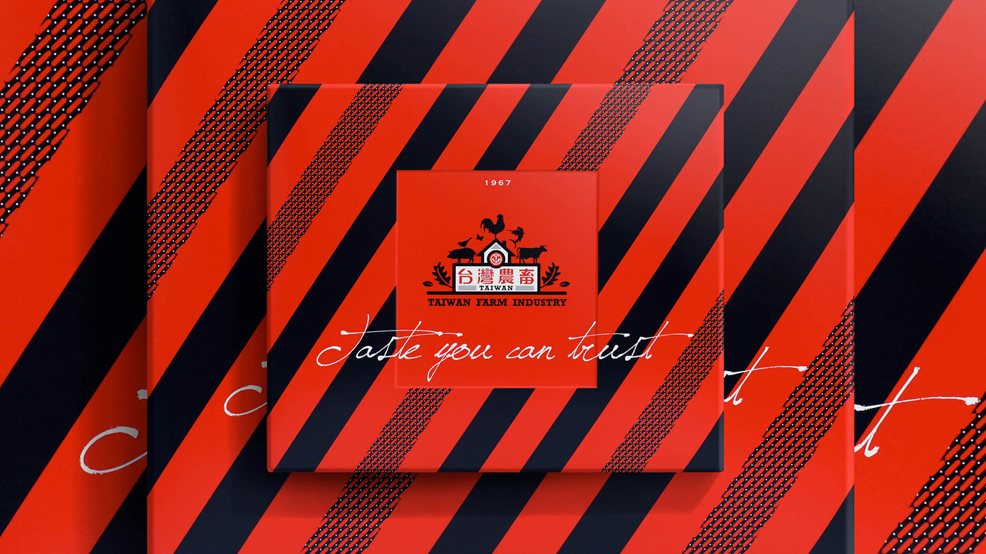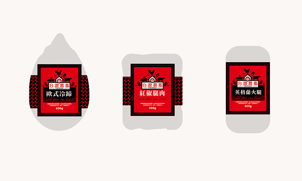 透過熱情明亮的色彩,顯眼現代的設計,紅與黑交錯的圖騰搭配專業質感的視覺系統,營造台畜產品的品質與多元新穎的時尚感,趣味性的農舍,直接傳達品牌的產業特質。搶眼俐落的現代化產品識別標誌,讓上一代的美味持續傳承在年輕世代的味覺中。