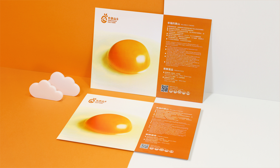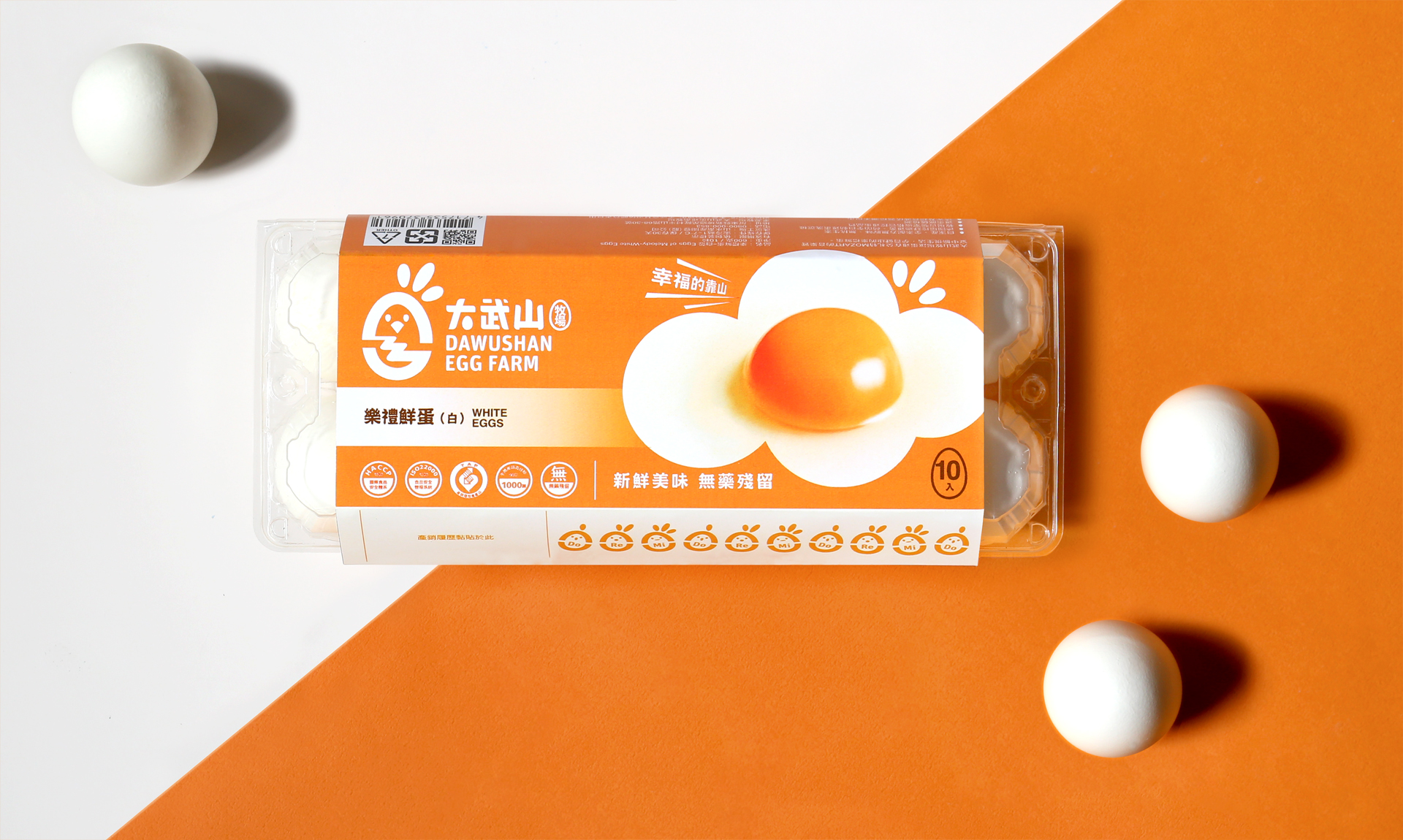 In order to deliver the healthy ambiance of Dawushan, SPARKLY utilizes the vivid figure and sunlight to set off fresh eggs, where the mark combines Dawushan with the eggs: the upper lies down Dawushan, symbolizing the protection of a Mother in our culture and history, and the source of multiple streams; the linear design for those streams represent the insistence of guarding the sources. The bottom layer symbolizes the earth providing plentiful fertility. The eggs coming from protection – Dawushan Egg Farm is your trustworthy egg farm to make your own happiness!