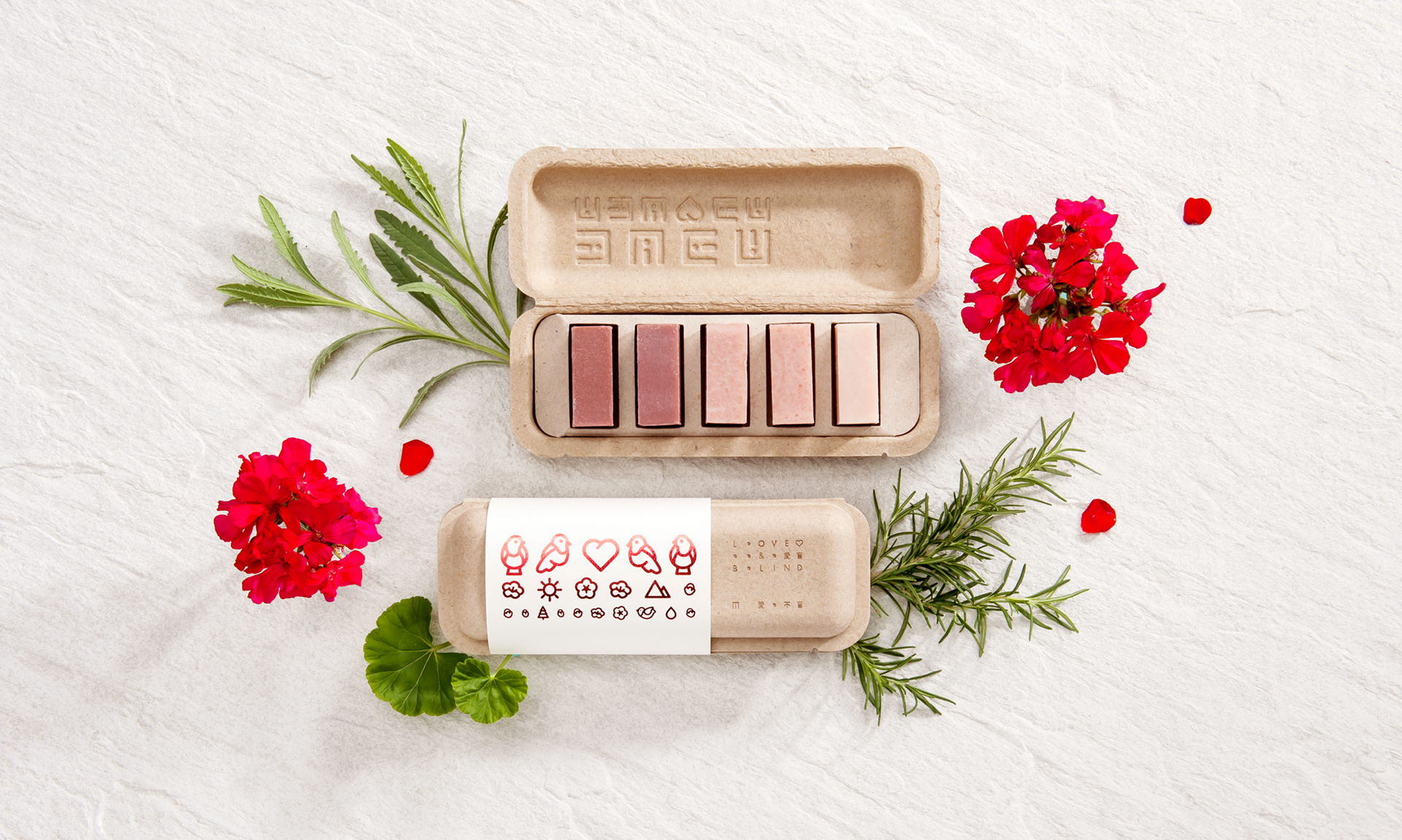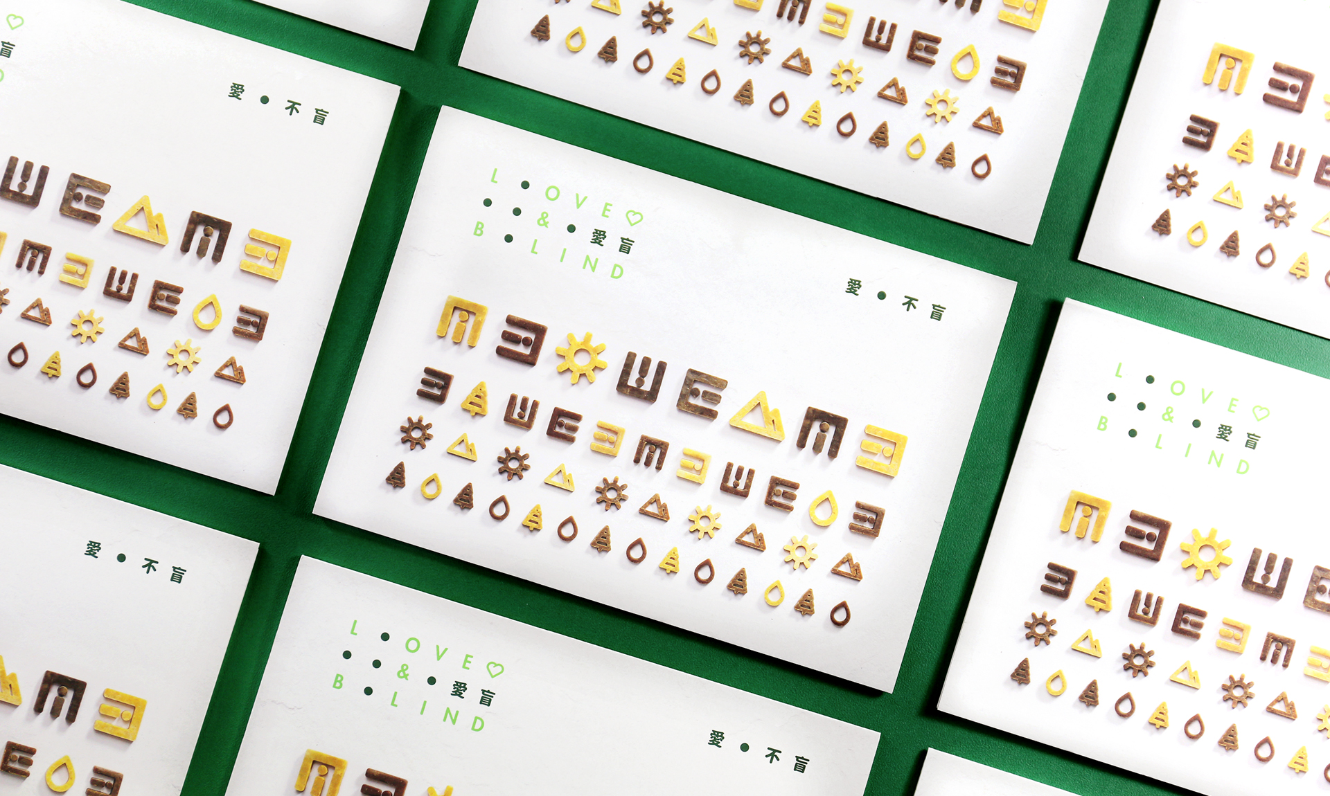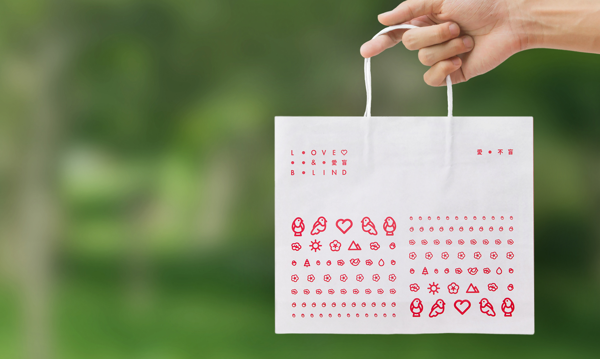 SPARKLY evaluates the business system of the foundation and sheltered workshop, and then defines the latter as the sales department. The first phase is based on the hand-made soaps, integrating the brand logo “Love is not blind” for its identification. SPARKLY utilizes the Braille of “Love” as the main characteristic, where the different opens of each character on the eye chart represent the diverse directions of our life. The Mandarin Phonetic Symbol “ㄇ” symbolizes the sheltered workshop, and the English alphabet “i” represents the visually impaired people within, cleverly combining with the element of an eye chart to demonstrate the idea of doing charity with love through the clear eyes; this is “Love is not blind.”