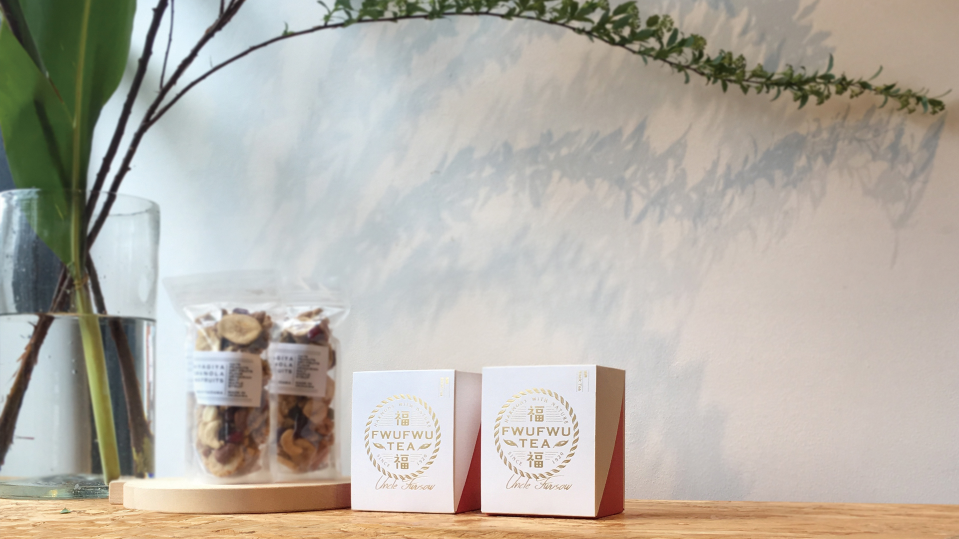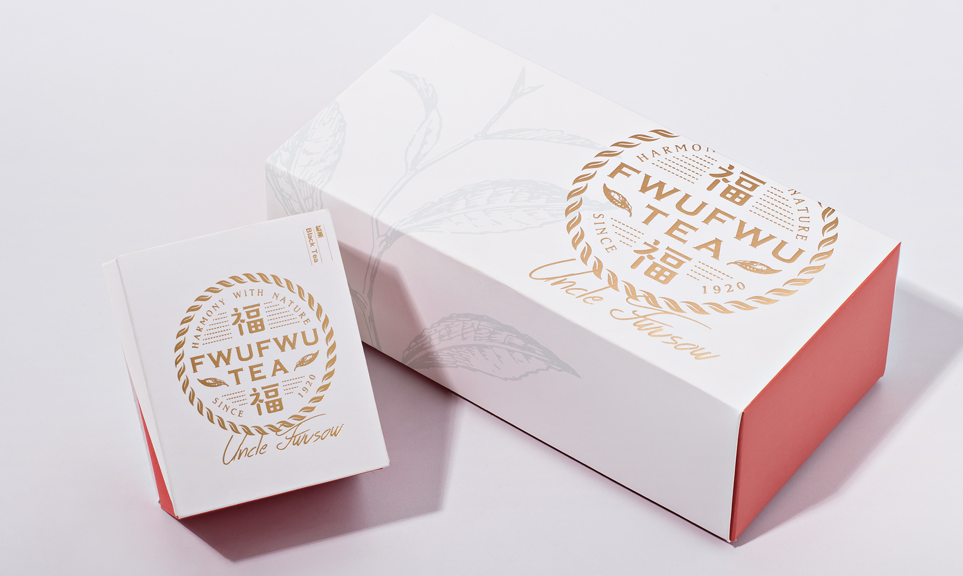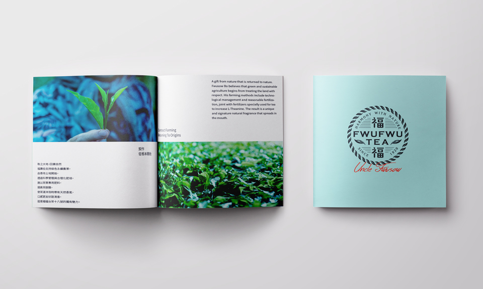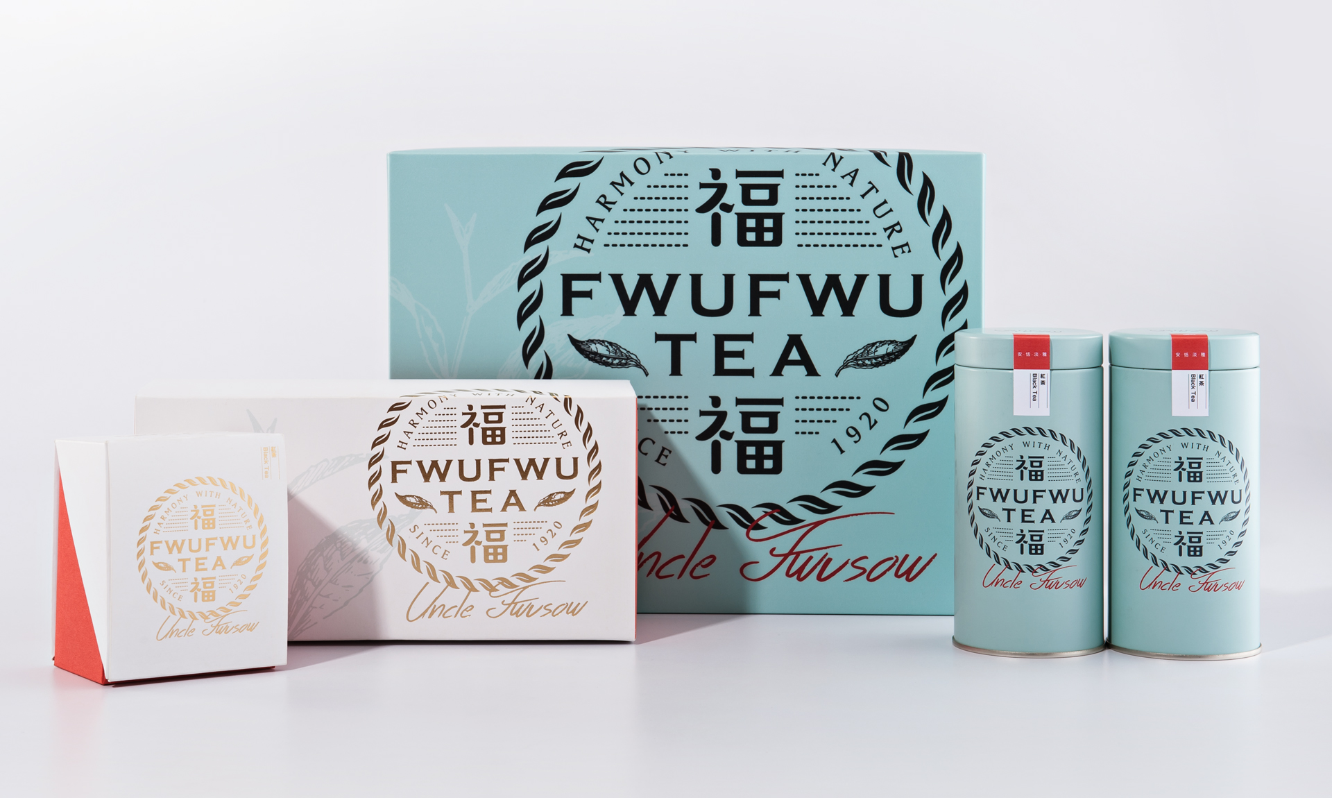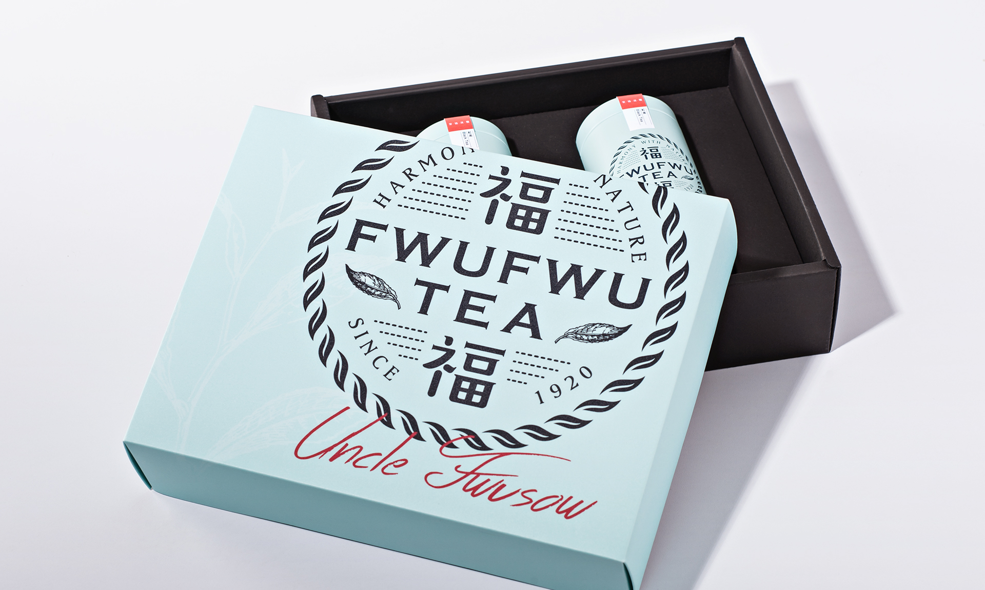 取之大地,回饋自然。以茶葉摘採一心二葉為設計概念,結合梯田、雲霧繚繞與方向標的位於正中心,襯托茶、人、自然循環的理念,強調來自在地經典好茶FWU FWU猶如喝茶時吹涼的聲音,襯托出喝茶時散發的茶香與甘醇風味。